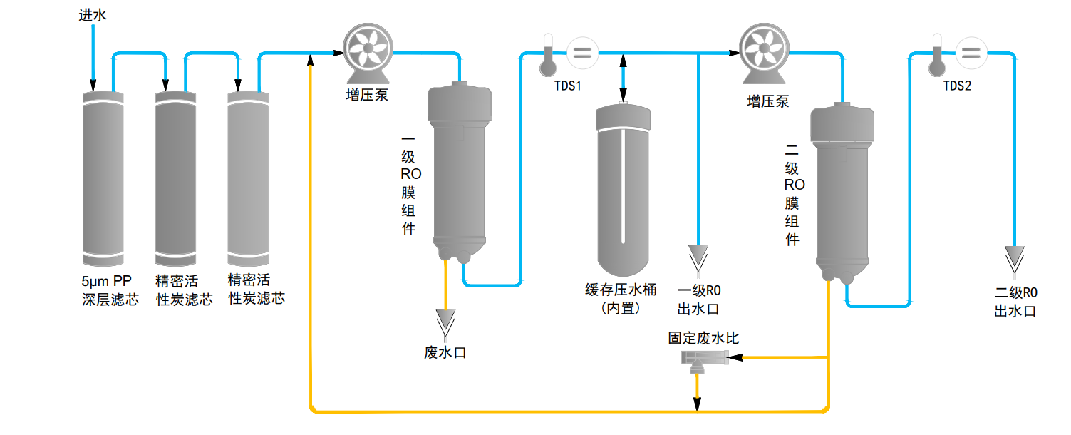 | ?一級RO水 | 離子截留率98%-99%(新膜),有機(jī)物截留率>99%(MW>200道爾頓)、顆粒和細(xì)菌截留率>99% | |